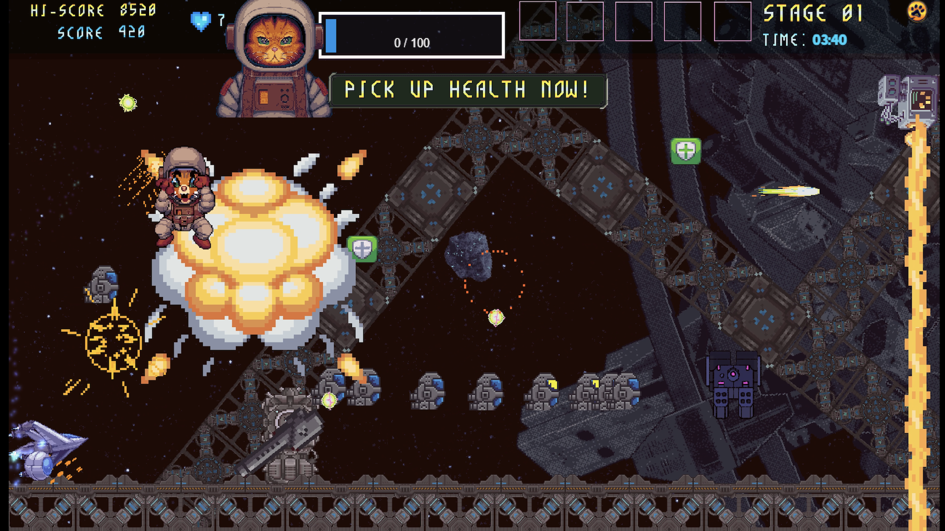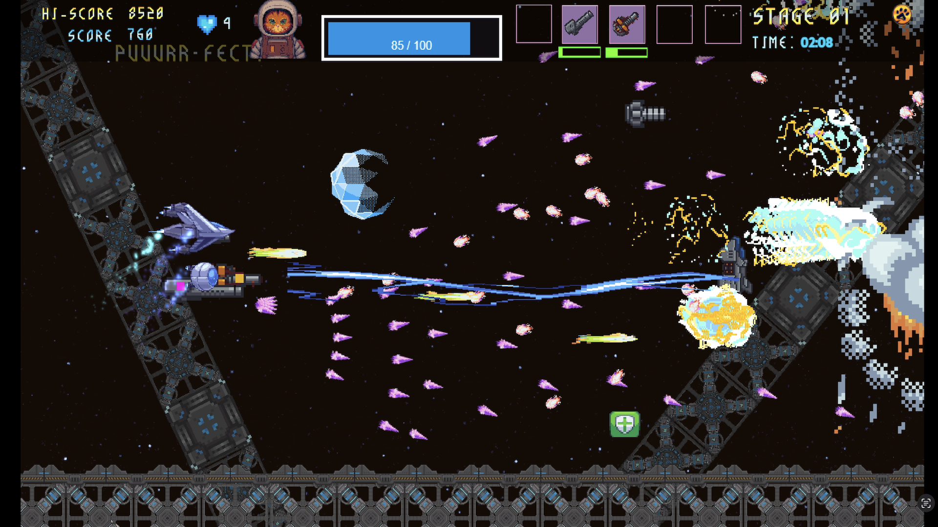 - Power-Ups Galore — Health, Ammo, Shields, plus the time-bending Catnip Mode(bullet-time in space, meow-yeah!).